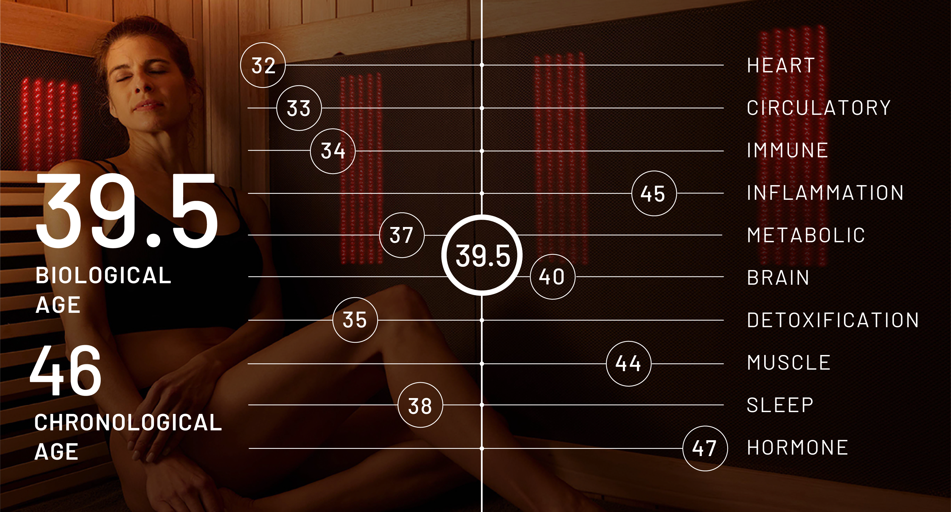 Infrared sauna therapy addresses a multitude of ageing-related factors, from heart health and circulation to immune strength, sleep, hormone balance, stress relief, weight management, and skin rejuvenation.